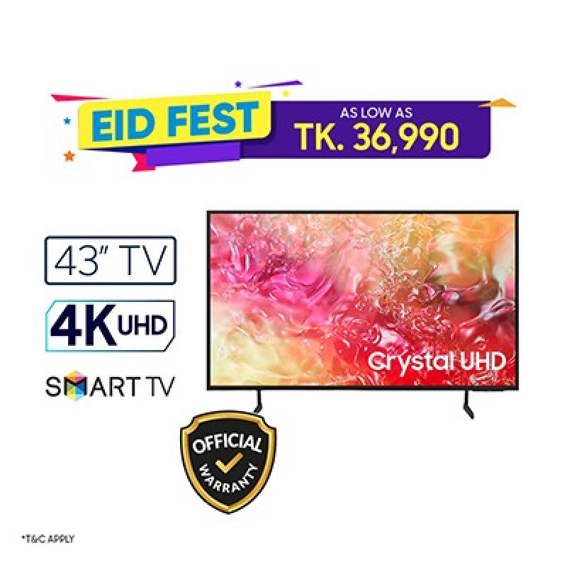 Samsung 43 Inch Crystal UHD 4K Smart TV (43DU7700) (2024)